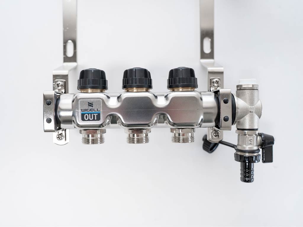 Rozdeľovače Wigell je možné namontovať priamo na stenu alebo pomocou dodaných držiakov do skrine rozdeľovača. Montážna poloha je ľubovoľná. Na tento rozdeľovač môžete pomocou zverného šróbenia pripojiť rúrky PeX-AL-PeX alebo Pe-rt.
