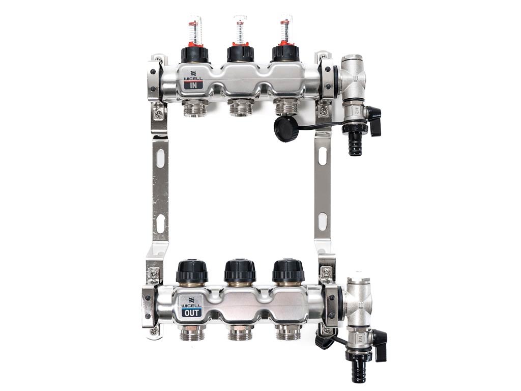 Podlahový rozdeľovač WIGELL, 3 okruhy, nerez + odvzdušňovanie na kľúč