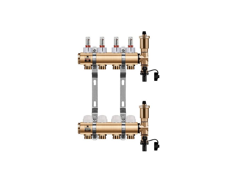 Podlahový rozdeľovač WIGELL, 4 okruhy, mosadzný + automatické odvzdušňovanie