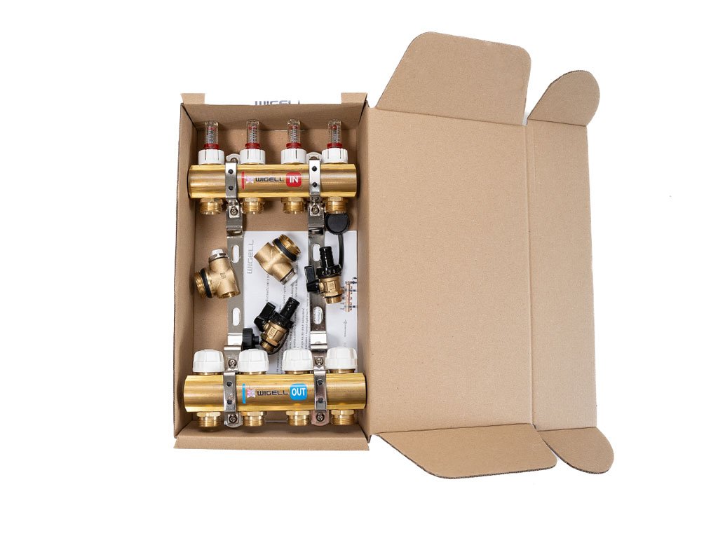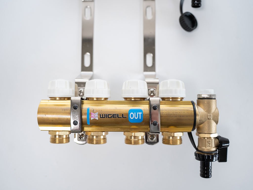 Rozdeľovače Wigell je možné namontovať priamo na stenu alebo pomocou dodaných držiakov do skrine rozdeľovača. Montážna poloha je ľubovoľná. Na tento rozdeľovač môžete pomocou zverného šróbenia pripojiť rúrky PeX-AL-PeX alebo Pe-rt.