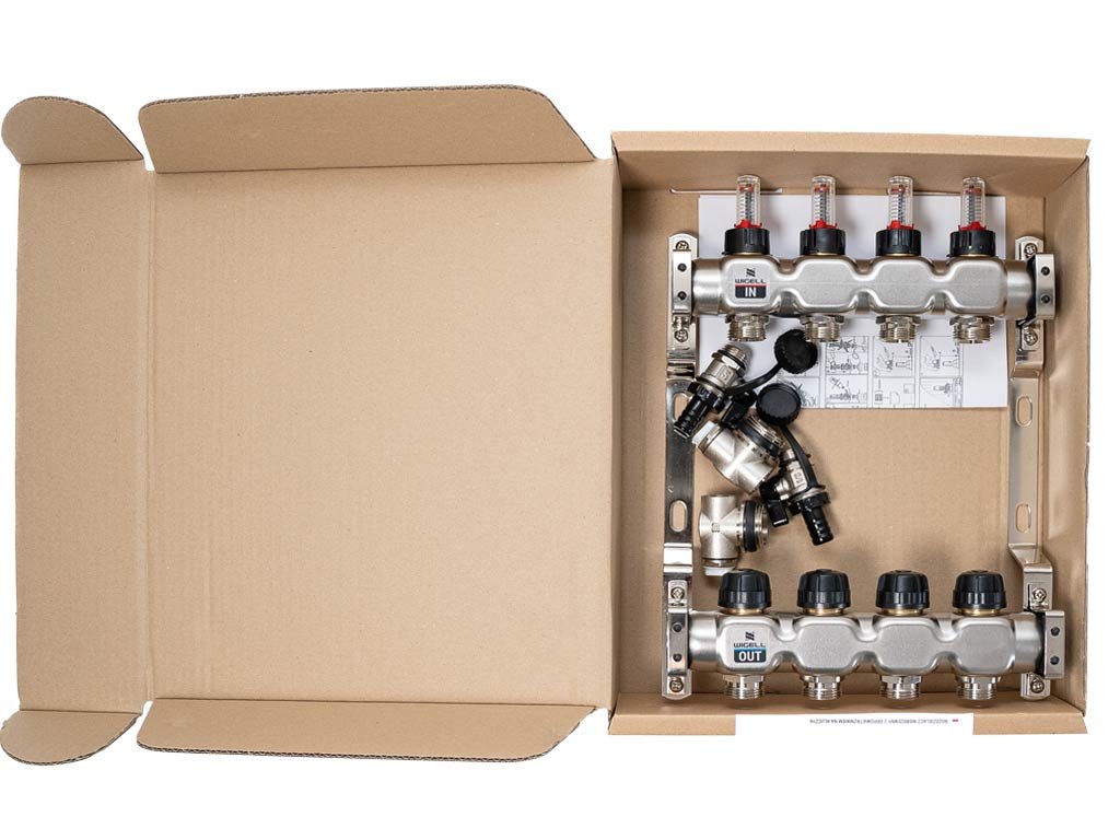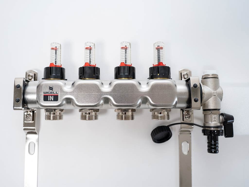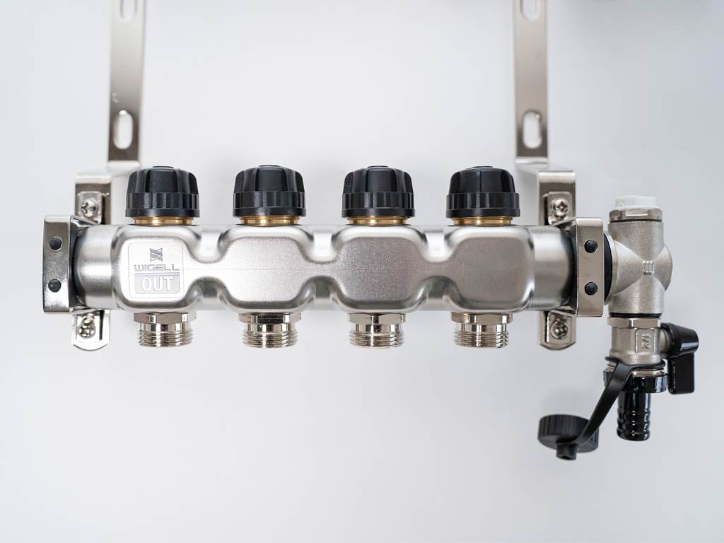 Rozdeľovače Wigell je možné namontovať priamo na stenu alebo pomocou dodaných držiakov do skrine rozdeľovača. Montážna poloha je ľubovoľná. Na tento rozdeľovač môžete pomocou zverného šróbenia pripojiť rúrky PeX-AL-PeX alebo Pe-rt.