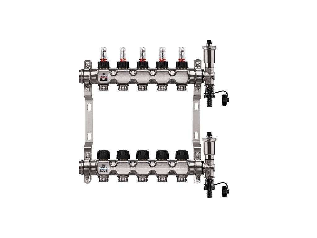 Podlahový rozdeľovač WIGELL, 5 okruhov, nerez + automatické odvzdušňovanie