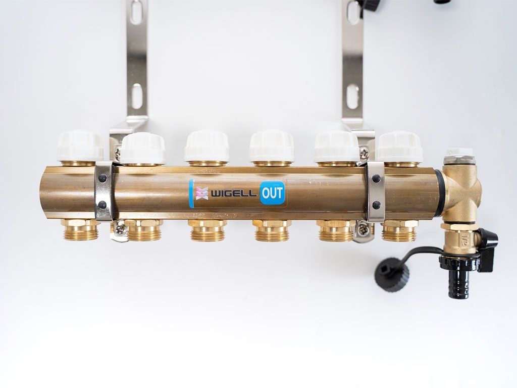 Rozdeľovače Wigell je možné namontovať priamo na stenu alebo pomocou dodaných držiakov do skrine rozdeľovača. Montážna poloha je ľubovoľná. Na tento rozdeľovač môžete pomocou zverného šróbenia pripojiť rúrky PeX-AL-PeX alebo Pe-rt.