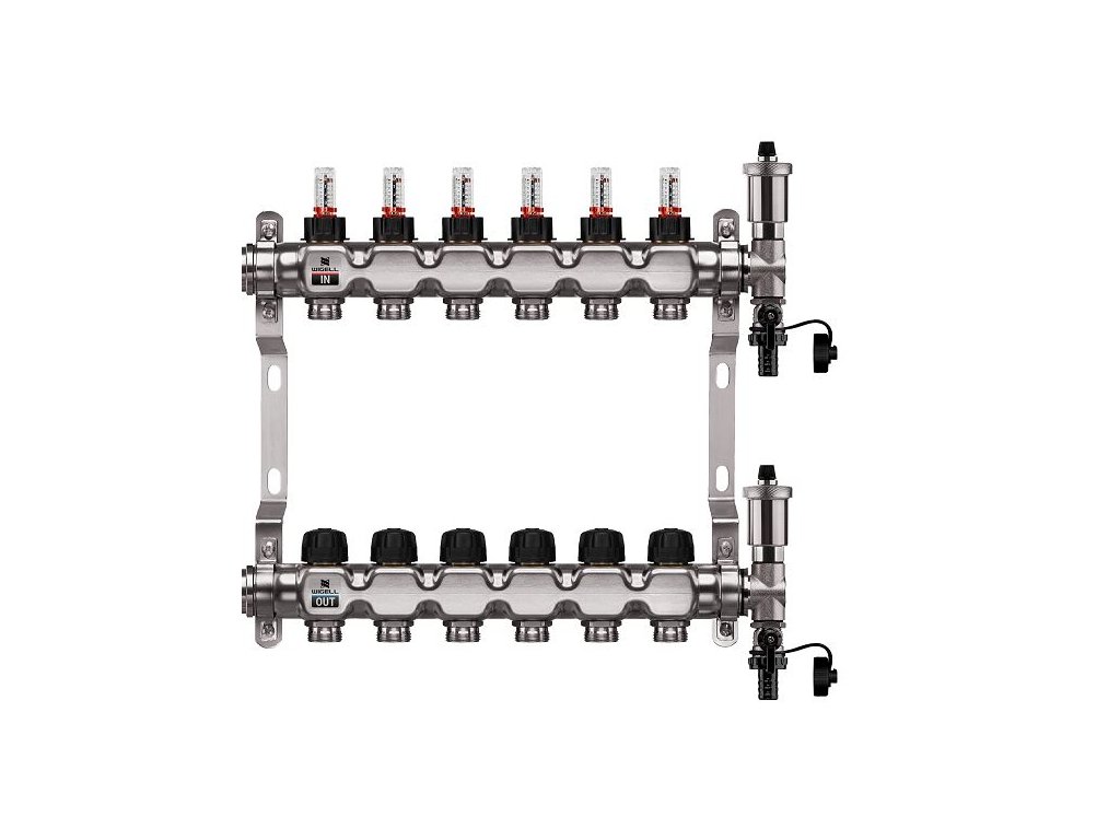 Podlahový rozdeľovač WIGELL, 6 okruhov, nerez + automatické odvzdušňovanie