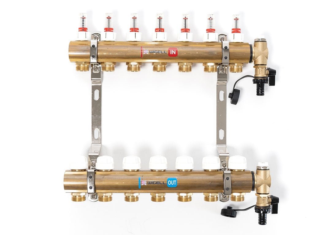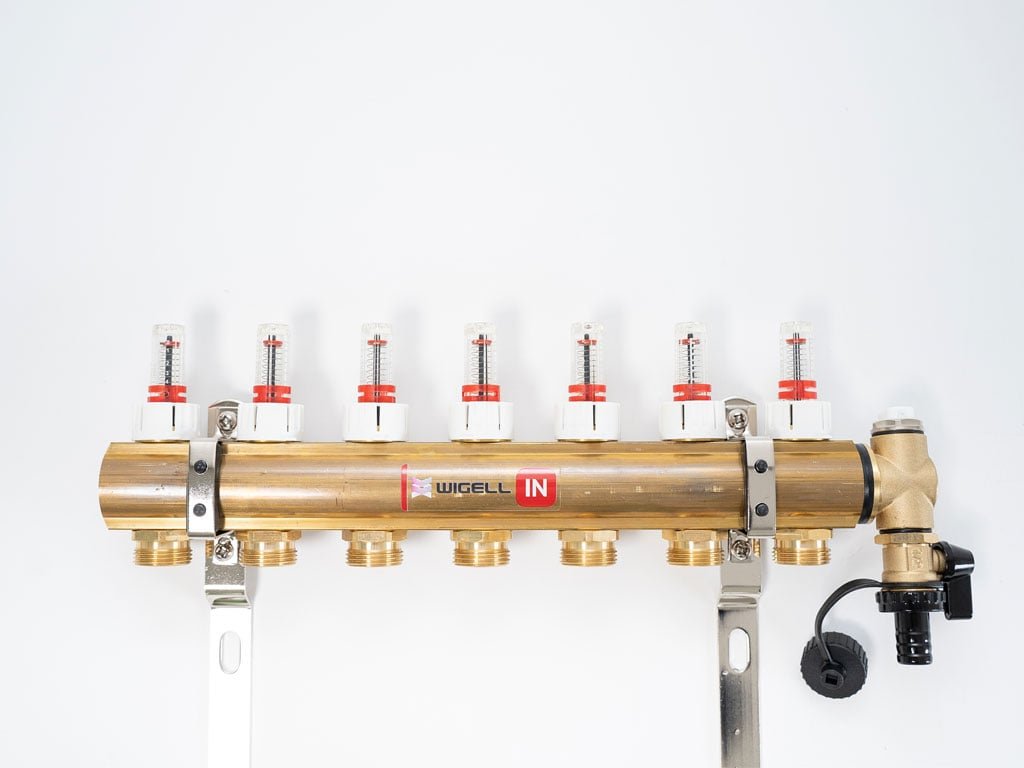 Podlahový rozdeľovač WIGELL, 7 okruhov, mosadzný + odvzdušňovanie na kľúč