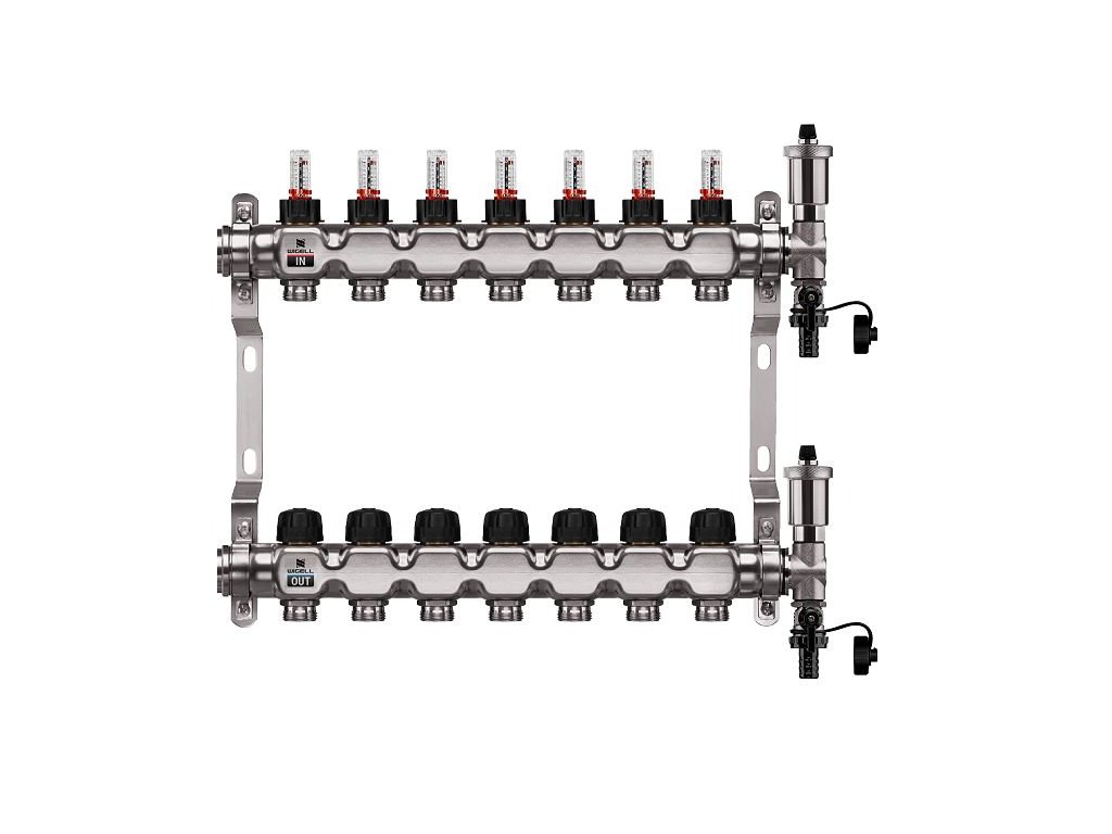 Podlahový rozdeľovač WIGELL, 7 okruhov, nerez + automatické odvzdušňovanie