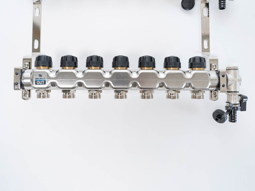 Rozdeľovače Wigell je možné namontovať priamo na stenu alebo pomocou dodaných držiakov do skrine rozdeľovača. Montážna poloha je ľubovoľná. Na tento rozdeľovač môžete pomocou zverného šróbenia pripojiť rúrky PeX-AL-PeX alebo Pe-rt.