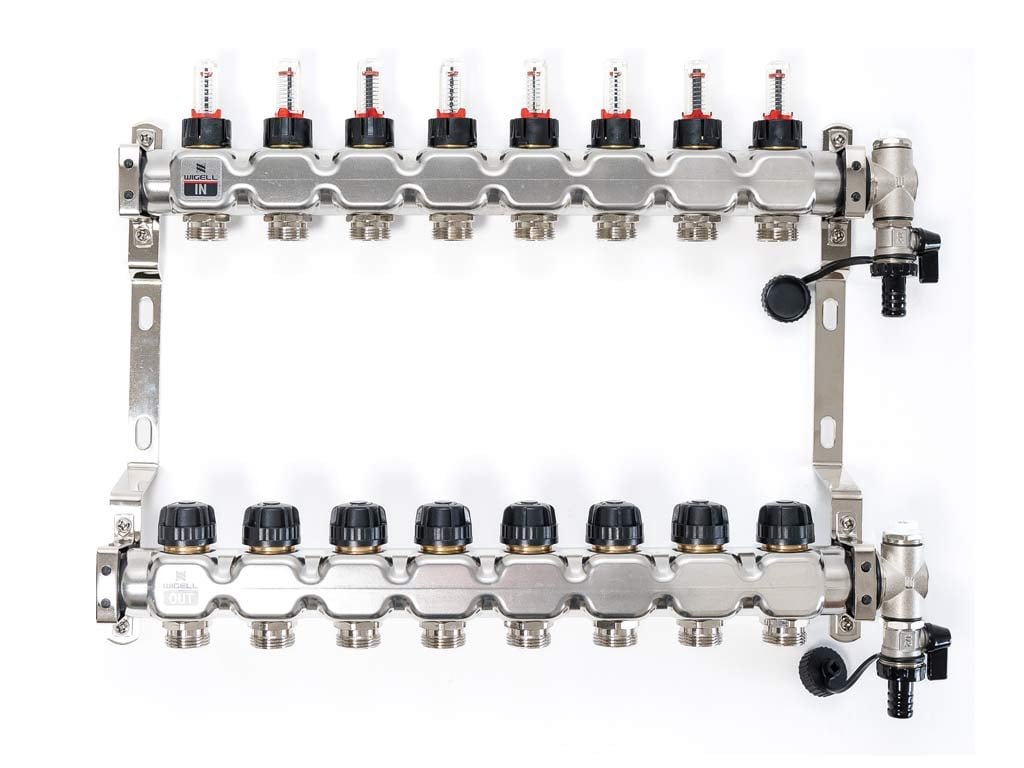 Rozdeľovač pre podlahové kúrenie je hlavným komponentom pre rovnomerné rozdelenie tepla v podlahových vykurovacích systémoch. Varianty rozdeľovačov zahŕňajú rôzne počty okruhov, obvykle od 2 do 18, a sú kompatibilné s podlahovým kúrením v priemeroch rúrky 16–20 mm.