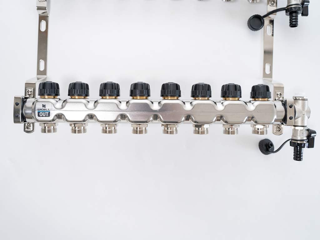 Rozdeľovače Wigell je možné namontovať priamo na stenu alebo pomocou dodaných držiakov do skrine rozdeľovača. Montážna poloha je ľubovoľná. Na tento rozdeľovač môžete pomocou zverného šróbenia pripojiť rúrky PeX-AL-PeX alebo Pe-rt.