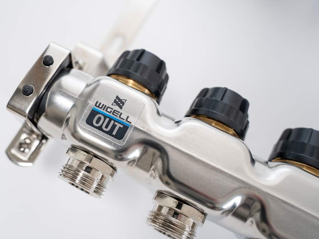 Rozdeľovače Wigell je možné namontovať priamo na stenu alebo pomocou dodaných držiakov do skrine rozdeľovača. Montážna poloha je ľubovoľná. Na tento rozdeľovač môžete pomocou zverného šróbenia pripojiť rúrky PeX-AL-PeX alebo Pe-rt.