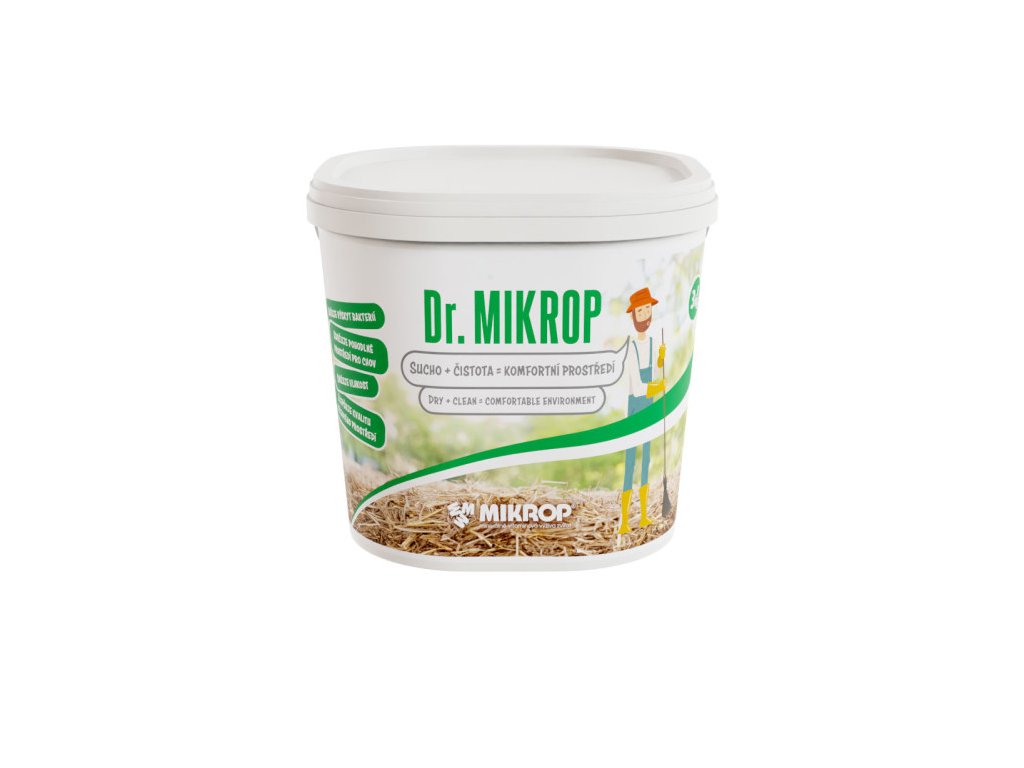 Dr. MIKROP představuje kombinovaný desikátor (vysoušeč) prostředí na bázi fylosilikátů. Fylosilikáty jsou specifické jíly, které jsou složené do jednotlivých vrstev a právě díky této struktuře na sebe dokáží vázat vodu. Výhodou je, že proces vázání a následné uvolňování vody do ovzduší ze struktury jílů se děje opakovaně – nedojde tedy k vytvoření blátivé podestýlky. Voda navázaná mezi jednotlivé vrstvy jílu není aktivní, čili nemůže být využita pro pomnožení patogenních bakterií, což obecně přispívá k lepší hygieně v chovu zvířat. Rovněž je snížena produkce škodlivého čpavku. Přípravek dále obsahuje éterické oleje, které vedou ke zlepšení kvality vzduchu, a tím i k zlepšení okysličení krve chovaných zvířat. Během odchovu drůbeže a odstavu králíků výrazně snižuje úhyny.
