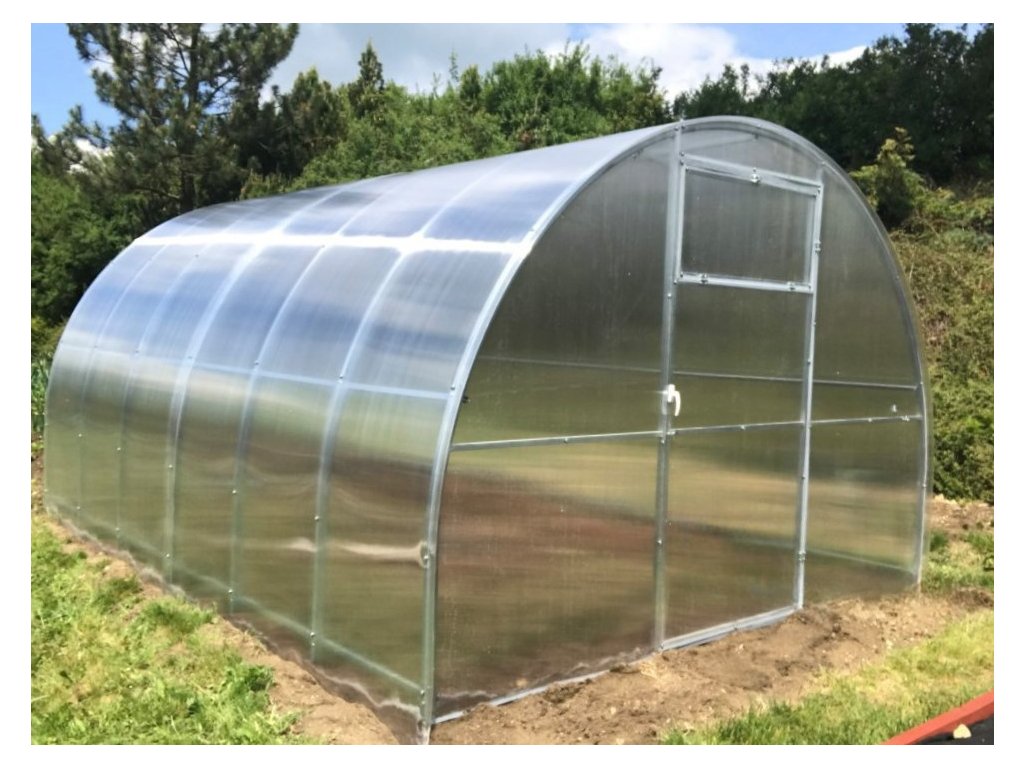 Zasklenie skleníka je tvorené čírym dutinkovým (komôrkovým) polykarbonátom s hrúbkou 6 mm s UV ochranou, vďaka ktorej nekrehne a nežltne. Polykarbonát je certifikovaný a spĺňa všetky podmienky zdravotnej nezávadnosti.