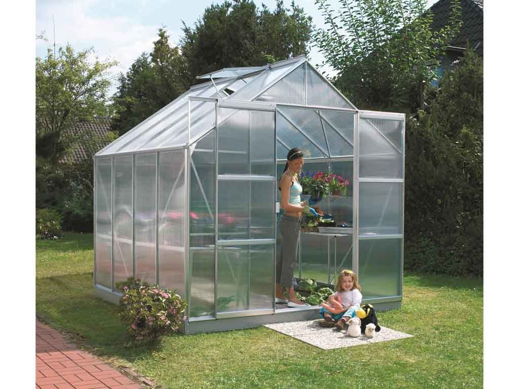 Polykarbonátový skleník VITAVIA URANUS 6700, PC 6 mm, strieborný + základňa VITAVIA URANUS 6700 sivá