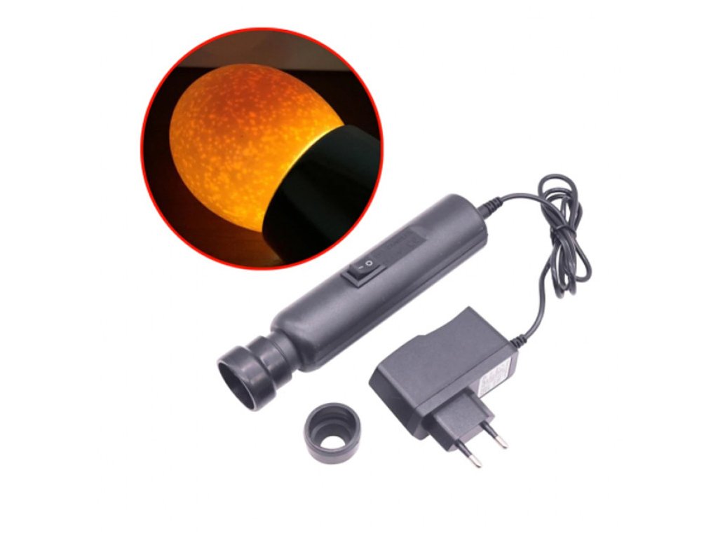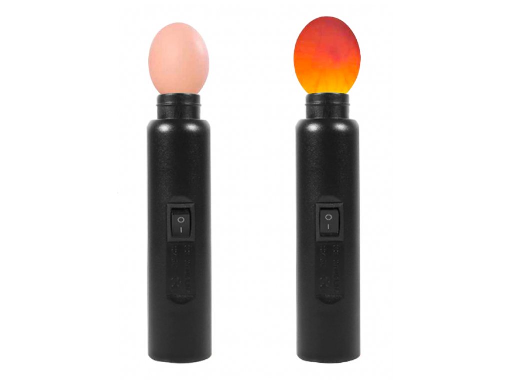 Odporúčanie: Zbytočne nepredlžujte dobu presvecovania – nezvyčajná intenzita svetla môže vyvolať biologické zmeny u embrya, keďže zvyšuje saturáciu uhľovodíkmi. Presvetľovačka sa zapína mikroprepínačom. Sondu nasadzujte na špičku vajca. Vzduchová bublina na širšom konci vajca sa bude s pokračujúcou inkubáciou zväčšovať.