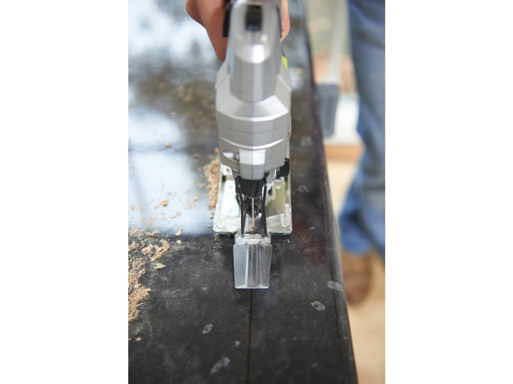Výkonná elektrická priamočiara píla RYOBI RJS1050-K, 680 W, ponúka perfektné riešenie pre všetkých remeselníkov a domácich majstrov, ktorí hľadajú pomocníka pri práci v dielni. Tento nástroj je ideálny pre rezanie zložitých tvarov z dreva, plastu, sadrokartónu, kovu a v doskových materiáloch (DTD, MDF, OSB, preglejky, latovky atď.).