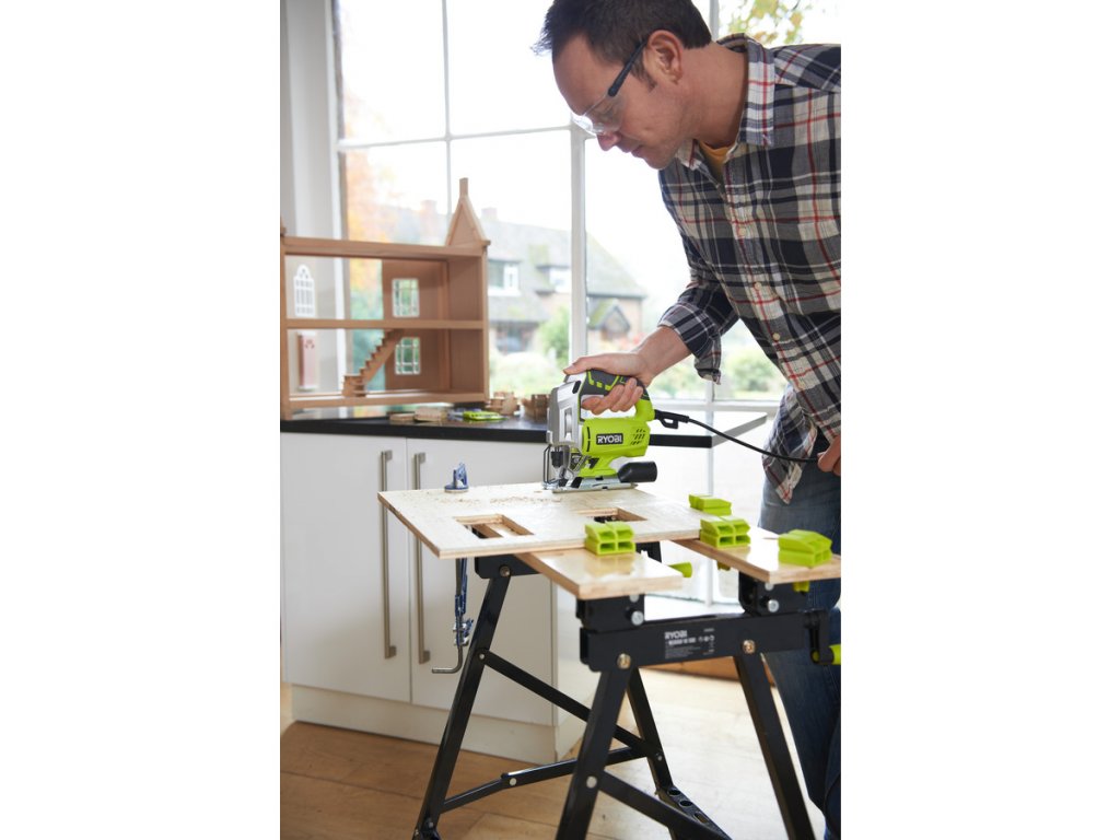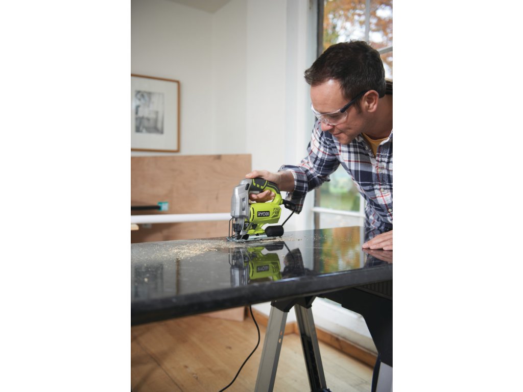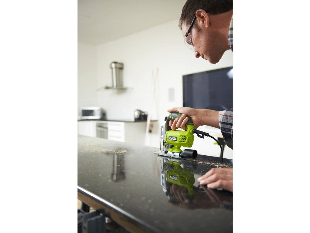 Kompaktná elektrická priamočiara píla RYOBI RJS750-G, 500 W, ponúka perfektné riešenie pre všetkých remeselníkov a domácich majstrov, ktorí hľadajú pomocníka pri práci v dielni. Tento nástroj je ideálny pre rezanie zložitých tvarov z dreva, plastu, sadrokartónu, kovu a v doskových materiáloch (DTD, MDF, OSB, preglejky, latovky atď.).