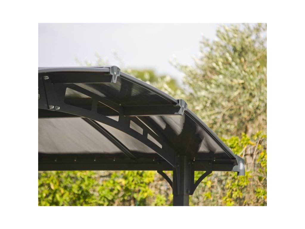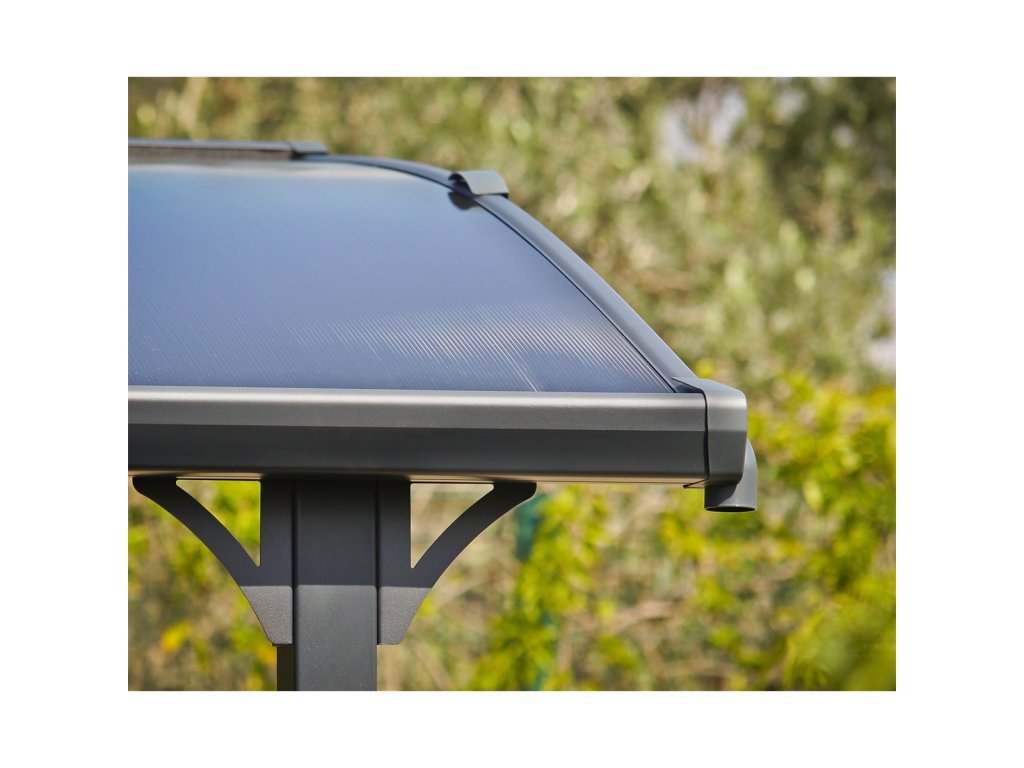 Arcadia 4300 je ideálny nielen ako kryt pre automobil, ale aj pre vonkajšie posedenie, detské ihrisko alebo pracovnú zónu. Strecha chráni pred dažďom, snehom, UV žiarením, krúpami aj padajúcim lístím. Integrované okapy umožňujú bezpečné odvádzanie vody a zvyšujú komfort používania.