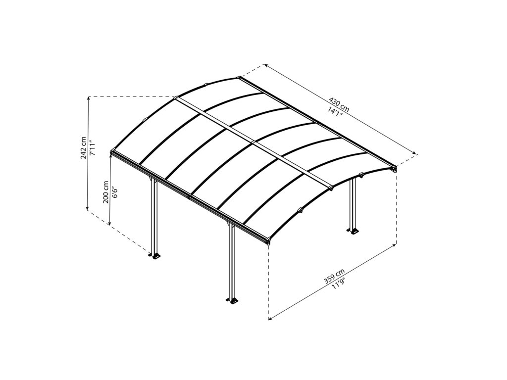 Arcadia 4300 je elegantný a moderný prístrešok, ktorý poskytuje štýlovú ochranu vášho auta, vonkajšieho posedenia alebo detského ihriska pred nepriaznivým počasím. Vďaka pokročilej technológii spoločnosti PALRAM ho ľahko postavíte počas jediného dňa. Arcadia je dostupná v rôznych variantoch – Arcadia 4300, 5000, 6400 a 8500.