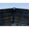 Konštrukcia je vyrobená z odolných hliníkových profilov (80 x 80 mm) a dvojkomôrkových polykarbonátových panelov s bronzovým nádychom, ktoré poskytujú vysokú pevnosť, odolnosť voči krúpam aj poveternostným podmienkam. Polykarbonátové panely disponujú 100% UV ochranou, čím sa predchádza ich žltnutiu alebo krehkosti. Rám je ošetrený galvanizáciou a práškovým lakovaním v antracitovej farbe, čo zaručuje jeho odolnosť voči korózii a dlhodobú životnosť.