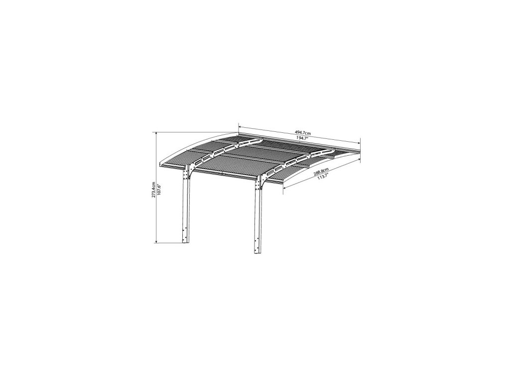 | Rozmery prístrešku (D x Š x V): | 494,7 x 288,8 x 273,5 cm |