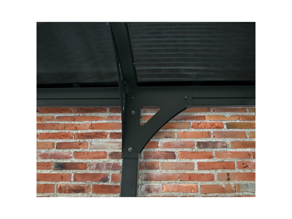 Konštrukcia je vyrobená z odolných hliníkových profilov a dvojkomôrkových polykarbonátových panelov, ktoré poskytujú vysokú pevnosť, odolnosť voči krúpam aj nepriazni počasia. Špeciálny systém nasunutia panelov zaisťuje dokonalú tesnosť a eliminuje problémy s tepelnou rozťažnosťou. Rám ošetrený galvanizáciou a práškovým lakovaním je odolný voči korózii a dlhodobo si zachováva svoj vzhľad.