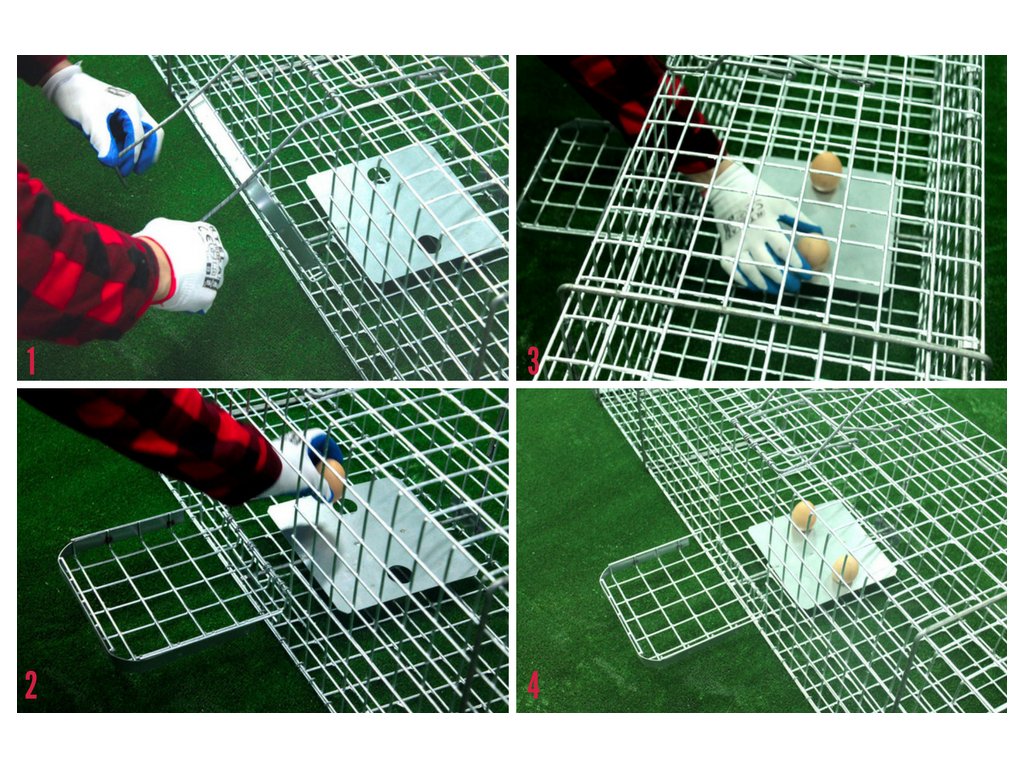 Návnada sa umiestňuje do stredu pasce, kde je pre zviera najatraktívnejšia. Vkladanie je vďaka masívnym bočným dvierkam pohodlné a zároveň bezpečné. Pomocou nášľapného mechanizmu možno nástrahu, napríklad vajce, pevne upevniť do pripravených otvorov, čím sa zvyšuje šanca na úspešný odchyt.