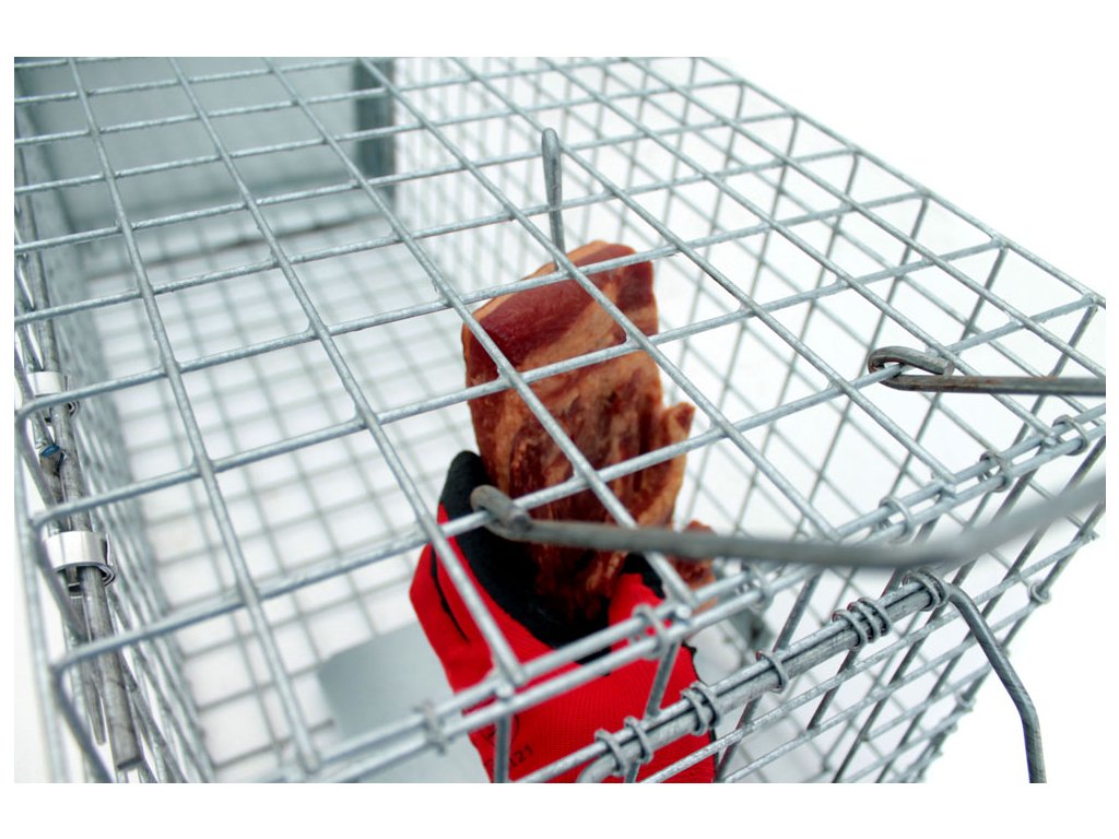 - Návnada sa umiestňuje na opačný koniec pasce od vstupu