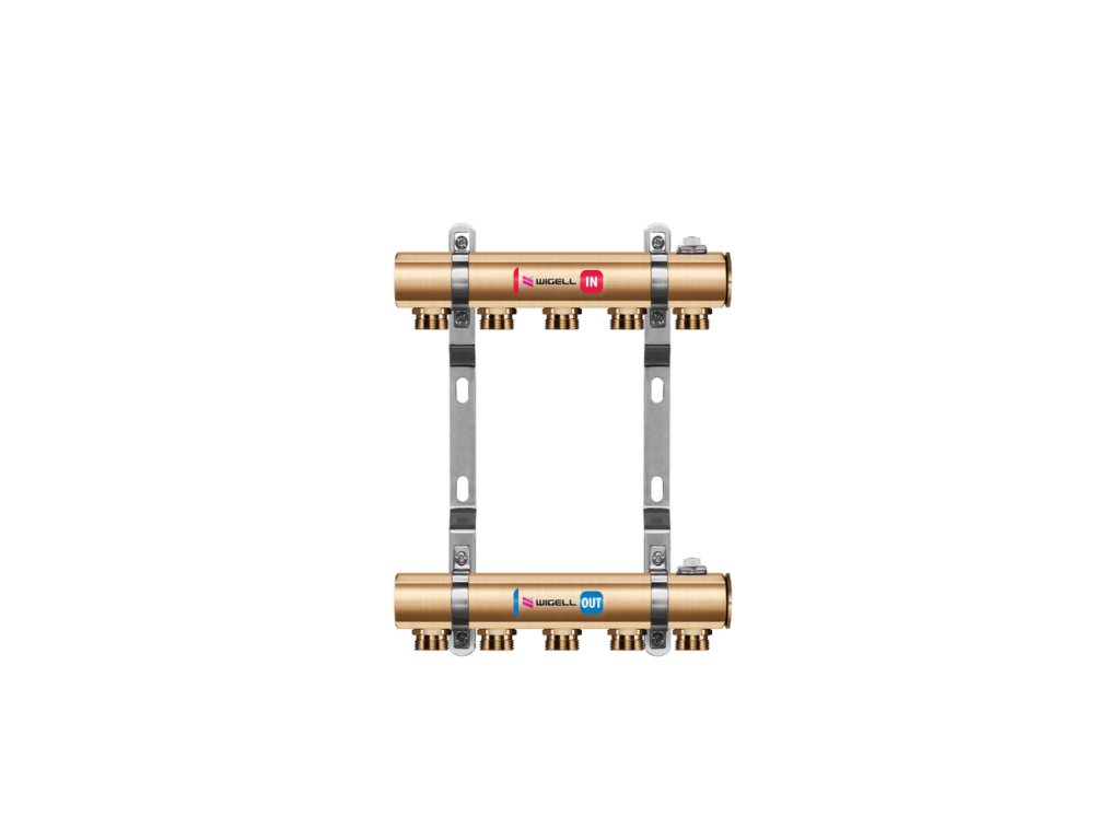 Rozdeľovač radiátorový WIGELL, 16 okruhov, mosadzný + vsuvky, odvzdušňovanie na kľúč