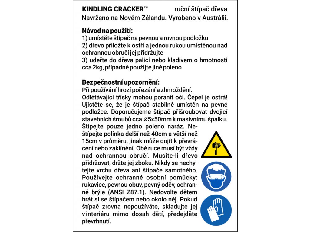 Bezpečná ručná štiepačka na drevo Kindling Cracker je dielom novozélandskej študentky, ktorá s týmto konceptom prišla potom, čo sa jej matka zranila pri štiepaní dreva s ostrou sekerou. U tejto štiepačky sa zaobídete bez nej. Poleno rozštiepite pomocou kladiva alebo polena o ostrie pod ochranou obručí. K zraneniu tak nemôže dôjsť. Štiepačku môžete umiestniť voľne na rovnú plochu, alebo ho priskrutkovať na zaistenie väčšej stability. Štiepačka je k dispozícii aj vo menšom prevedení.