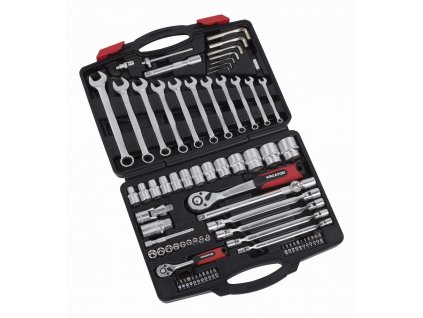 Sada náradia skladajúca sa z osemdesiatich piatich dielov s 1/4“ a 1/2“ palcovou račňou a nástrčnými hlavicami od štyroch milimetrov do tridsiatich dvoch milimetrov v CR-V kvalite.