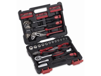 Táto sada obsahuje základné náradie, ktoré môžete využiť v domácnosti alebo v zamestnaní. Každý kúsok náradia má svoje miesto v praktickom plastovom kufri, ktorý nezaberie príliš veľa miesta a ľahko sa prenáša. Kufor je vhodný aj do automobilu. Súprava obsahuje náradie 66 kusov základného náradia na bežné využitie.