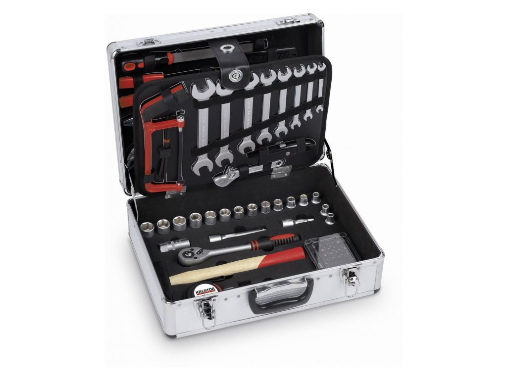 Praktická sada náradia Kreator v hliníkovom kufri je vhodná pre profesionálov aj domácich kutilov. Táto sada náradia obsahuje celkom 109 kusov náradia z dielne značky Kreator. Všetko je uložené v praktickom hliníkovom kufríku so zámkami.