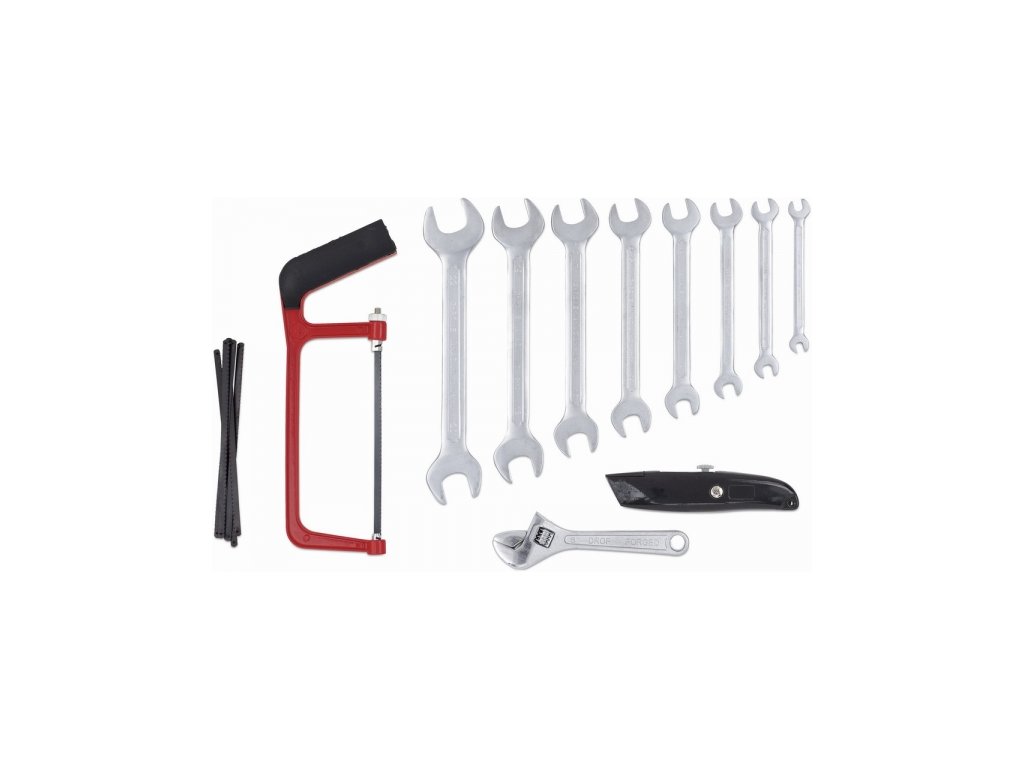 Do dielne sa budú hodiť - Kladivá, páčidlá, kotúče pre brúsky, kotúče pre píly, meradlá, kľúče, hasáky, sady skrutkovačov a vrtákov, gola sady a kufre na náradie.