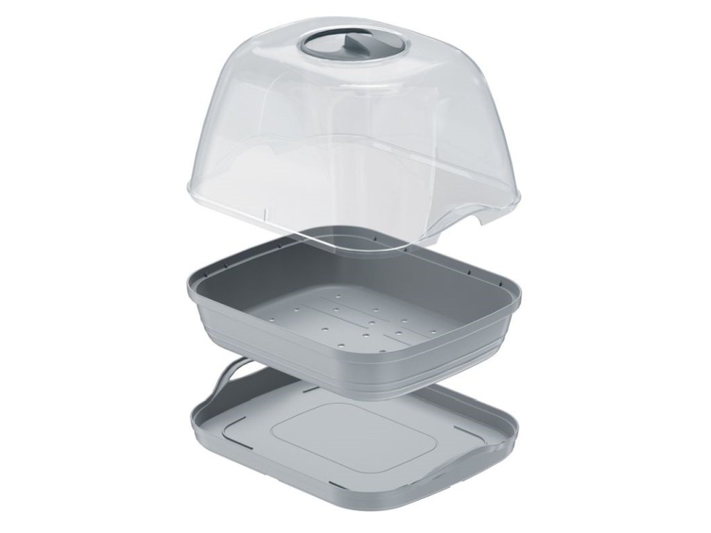 Prenosný sadbovač je neoddeliteľnou súčasťou každej záhrady a v ťažkých klimatických podmienkach tiež najjednoduchším riešením pre pestovanie rastlín. Tento miniatúrny skleník s dobrou ventiláciou a kontrolou vlhkosti nezaberie doma príliš veľa miesta a vytvára ideálne podmienky pre rast sadeníc. Ľahké priesvitné veko s regulovateľnými ventilačnými otvormi zaisťuje dokonalú mikroklímu a zabraňuje zapareniu rastlín. Zároveň chráni sadenice pred hmyzom.