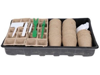 Sada obsahuje: 2x papierová doska sadbová 2 x 5 buniek (10 buniek), 40 x papierový kvetináč okrúhly 6 cm, 10 x ceduľka, 10 x plastový štítok, 2 x kolík na sadenie, 1 x ceruzka....