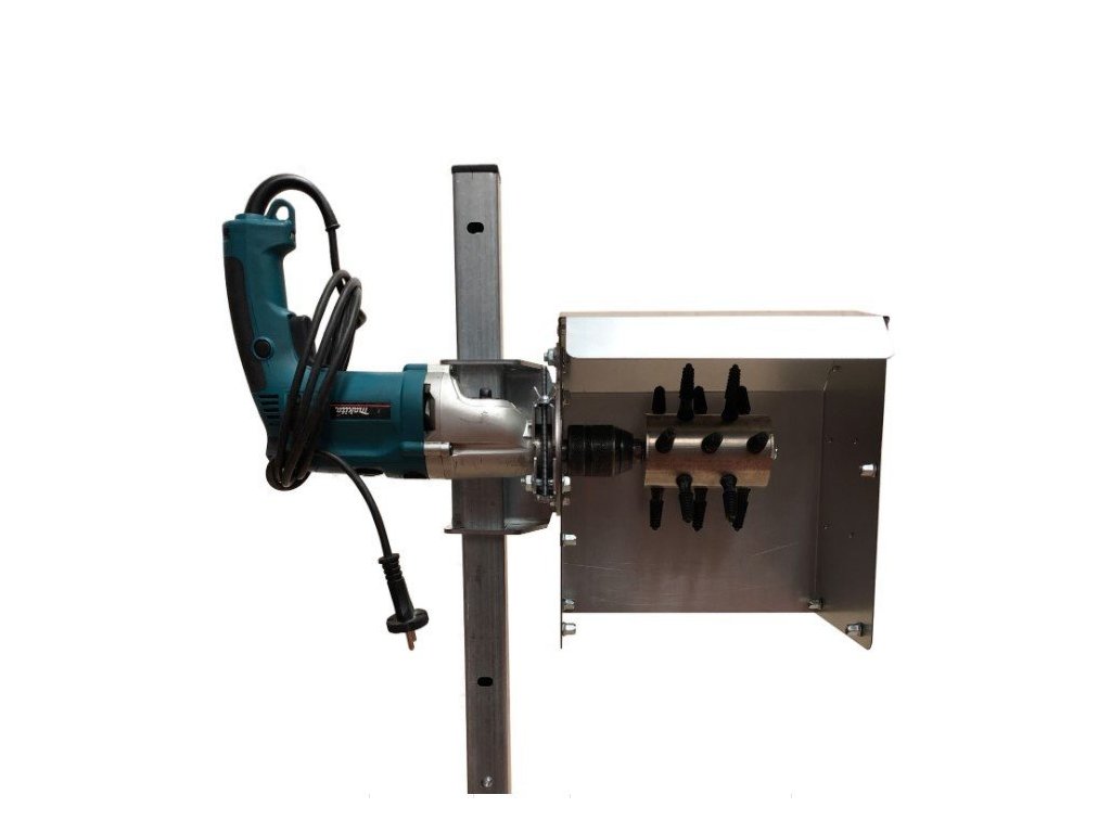 Šklbačka hydiny na vŕtačku s ochranným krytom a stojanom SPIUMATRICE DIT SP RU06