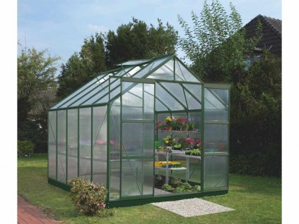 Skleník zo skla VITAVIA URANUS 8300, číre sklo 3 mm, zelený + základňa VITAVIA URANUS 8300 zelená