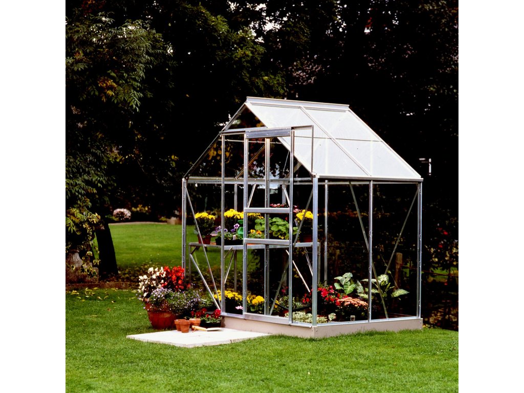 Skleník zo skla VITAVIA VENUS 2500, číre sklo 3 mm, strieborný + základňa VITAVIA VENUS 2500 sivá