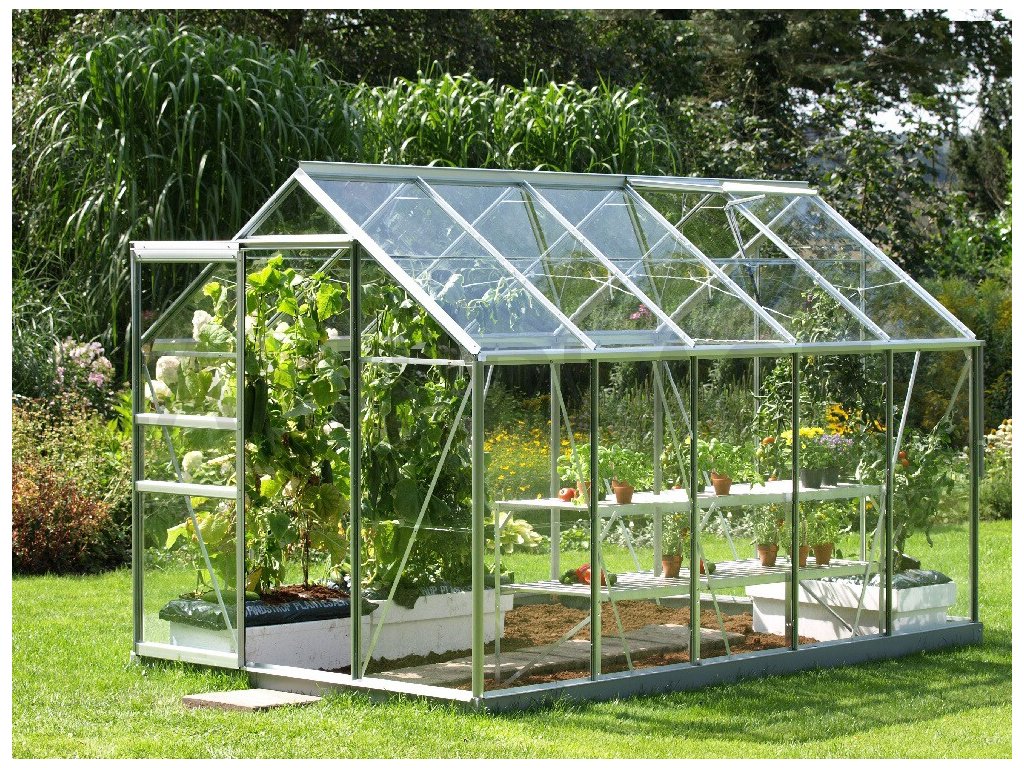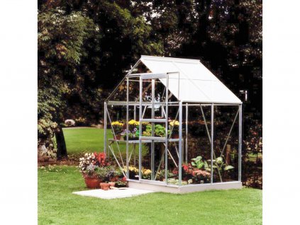 Konštrukcia skleníka je vyrobená z kvalitných eloxovaných hliníkových profilov 1,2 mm, pri ktorých poskytuje výrobca zmluvnú záruku 15 rokov na AL konštrukciu. Presklenie je z kaleného číreho skla hrúbky 3 mm. Číre sklo zaisťuje výbornú svetelnú priepustnosť, takže do skleníka je krásne vidieť zo všetkých strán a môžete sa kochať farbami pestovaných rastlín. Kalená verzia skla naviac zaisťuje jeho úplnú bezpečnosť - v prípade rozbitia sa sklenená výplň roztriešti na tisíce malých kúskov, čo zabráni prípadnému vážnemu zraneniu. To je veľmi dôležitá vlastnosť skleníka, ktorú ocenia predovšetkým rodičia malých detí pobehujúcich po záhrade. Presklenie je do hliníkových profilov kotvené pomocou oceľových sponiek. Pokiaľ by vás tento skleník zaujal, a skôr by ste uvítali polykarbonátové výplne, pozrite sa na varianty s polykarbonátom.