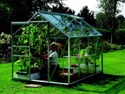 Klasický skleník VITAVIA VENUS 6200 1,9 x 3,2 m s výplňou z kaleného číreho skla, výborne poslúži všetkým začínajúcim záhradkárom, tak ako už skúseným pestovateľom. Skleníky radu VENUS sú zaradené do kategórie PREMIUM - skleník je vyrobený značkovým výrobcom z Veľkej Británie - VITAVIA GARDEN LTD. Vyniká kvalitným spracovaním.
