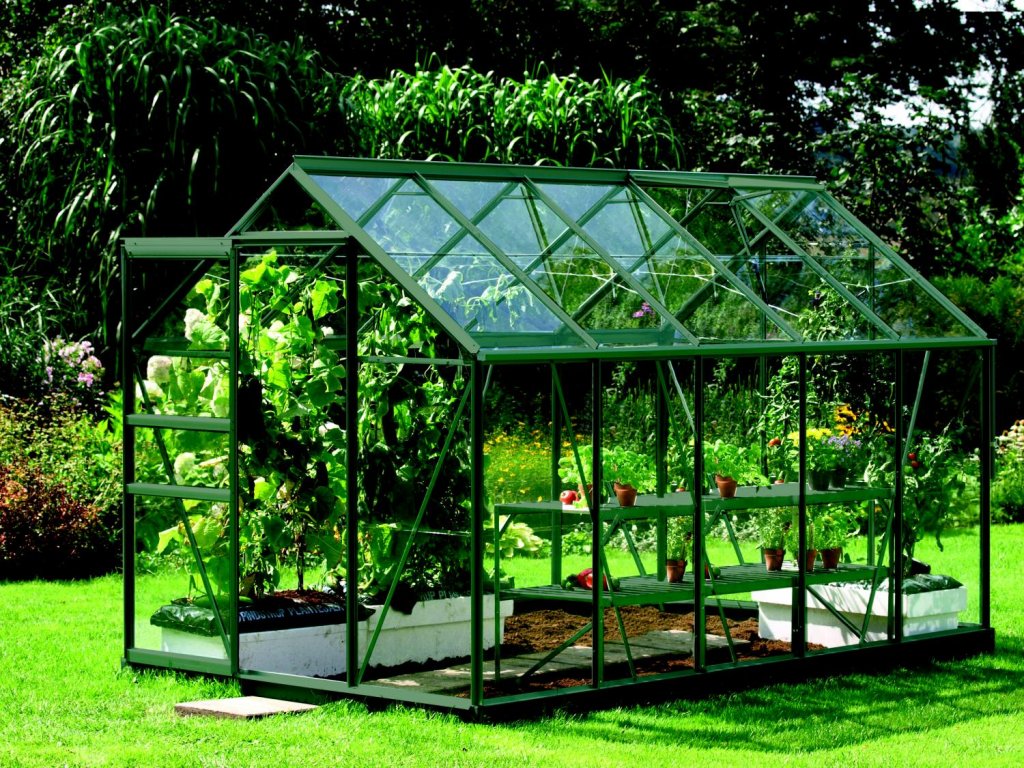 Skleník zo skla VITAVIA VENUS 6200, číre sklo 3 mm, zelený + základňa VITAVIA VENUS 6200 zelená