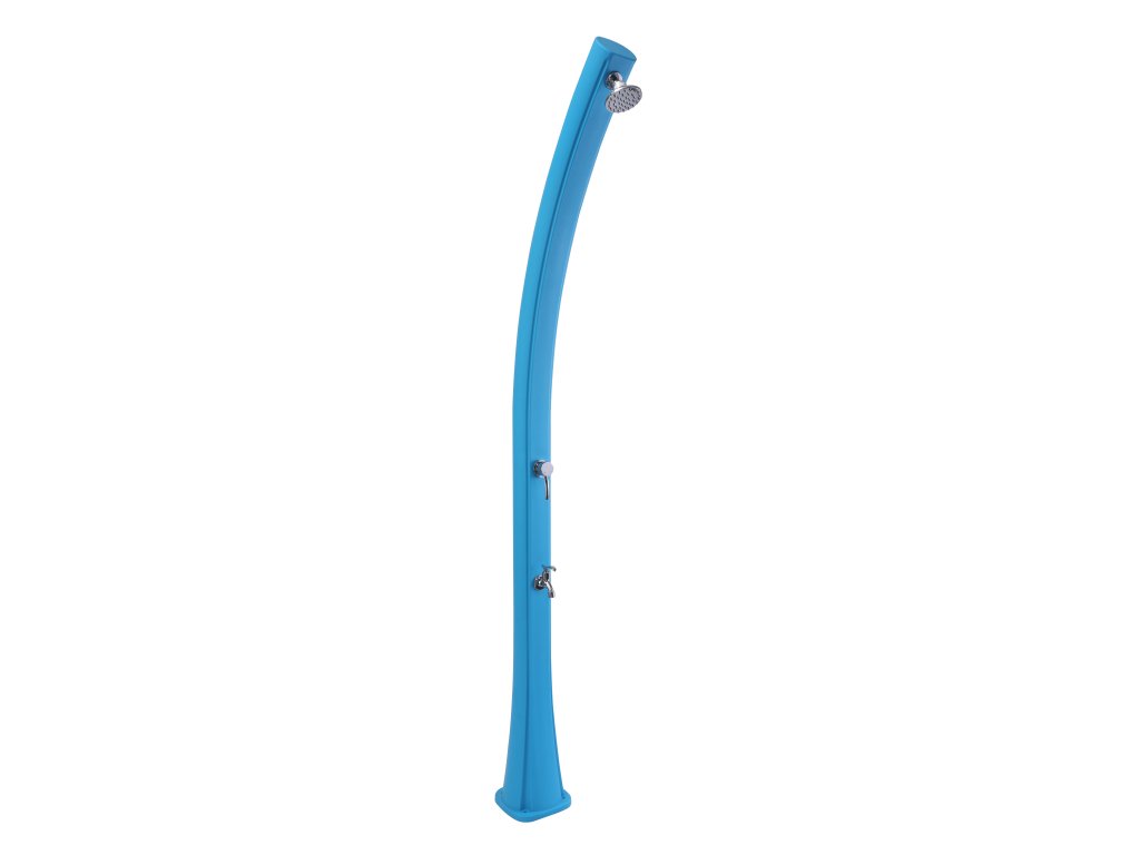 Dizajnová solárna sprcha v modrej farbe, ktorá osvieži každú záhradu. Sprcha je vyrobená z kvalitného PVC odolného voči UV žiareniu, má zásobník s objemom 25 l a výšku 215 cm. Je vybavená praktickým kohútikom na oplach nôh. Sprcha vyniká svojim minimalistickým prevedením. Pripojenie na prívod vody je veľmi jednoduché pomocou hadicovej rýchlospojky (súčasťou balenia).
