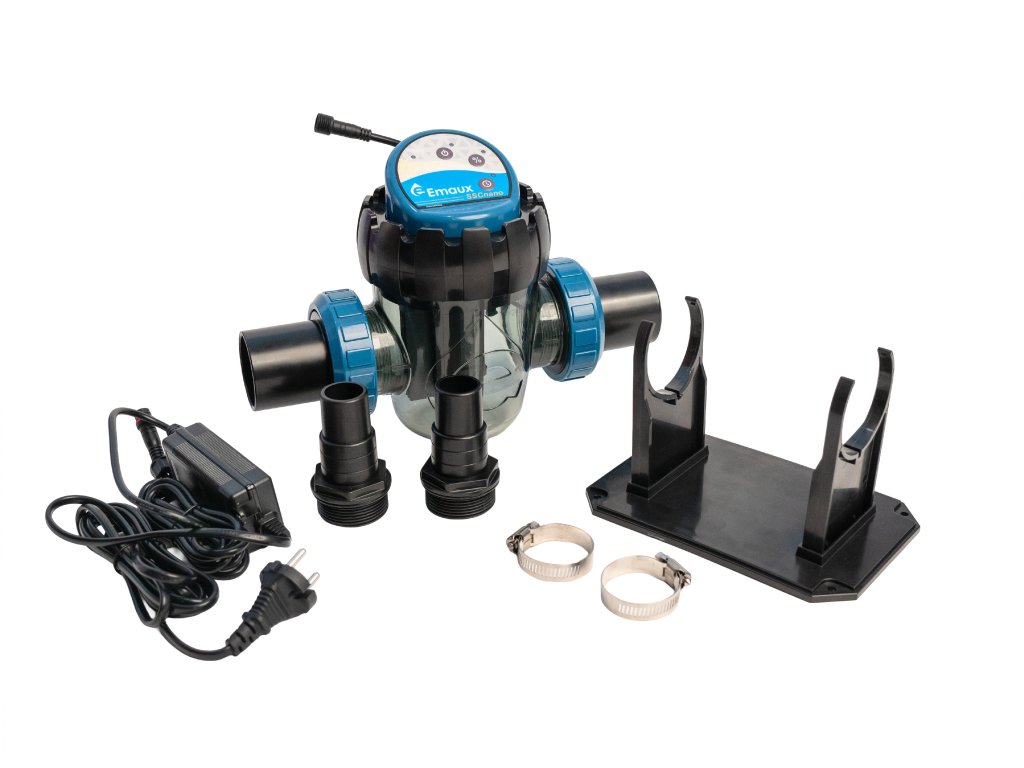 Solinátor SSC NANO Salt 8g/h – Inovativní inline solný chlorátor pro efektivní a ekologické chlorování Solinátor SSCnano je revoluční inline solný chlorátor, který se perfektně synchronizuje s vaším čerpadlem a nabízí kompletní kontrolu nad procesem chlorování. Díky přednastavenému časovači, flexibilním možnostem a 4 režimům výroby chloru, vám Solinátor SSCnano poskytne maximální pohodlí při údržbě vaší bazénové vody. Užijte si dlouhou životnost buněk a nižší spotřebu bazénové chemie díky efektivnímu a ekologickému designu tohoto zařízení. Chlorování solí je moderní a šetrná metoda dezinfekce bazénů, při které se plynný chlor vyrábí elektrolýzou roztoku slané vody. Elektrolýza přeměňuje chlorid sodný (sůl) ve vodě na plynný chlor, který následně desinfikuje vodu a zabíjí bakterie, viry, řasy... Tento proces zajišťuje dlouhotrvající a efektivní chlorování s minimálním vlivem na životní prostředí. Specifikace:Vstupní napětí: 110 – 240 V / 50-60 Hz Hladina soli: 3500 ppm Rychlost výroby: 8g/h Připojení: 50/38/32 mm Pracovní teplota: 10-45°C Minimální tok: 3m³/h Maximální objem bazénu: 40m³ Rozměry: 24x22x23 cmDodatočné parametre