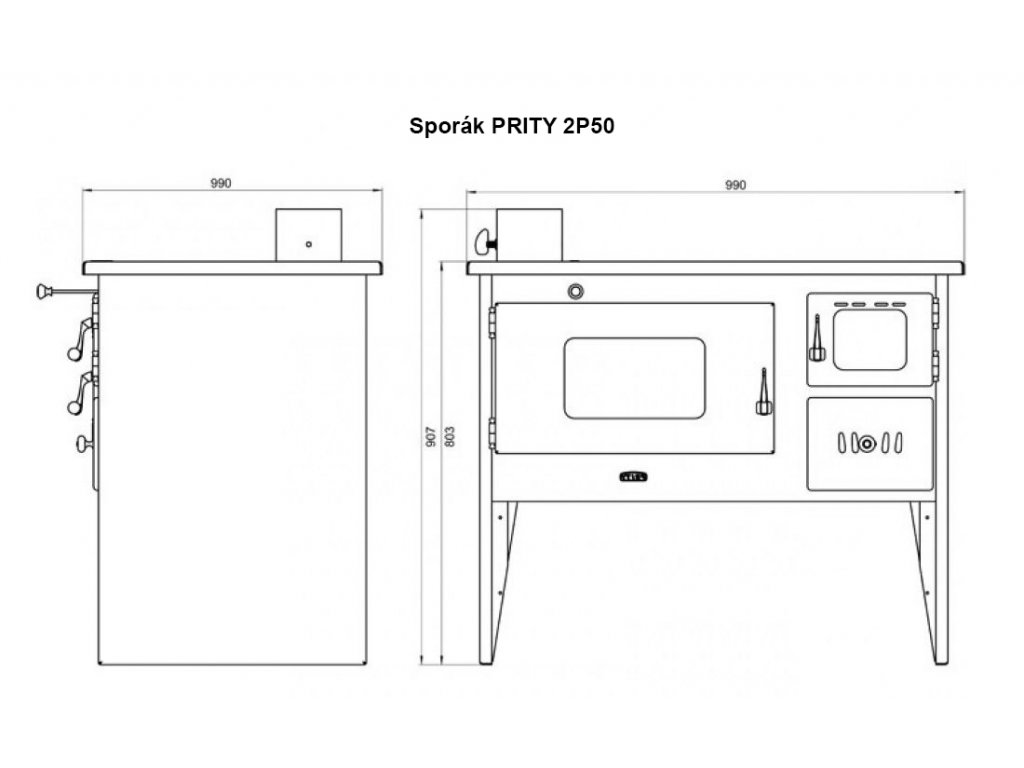 Sporák na tuhé palivá PRITY 2P50, ľavá