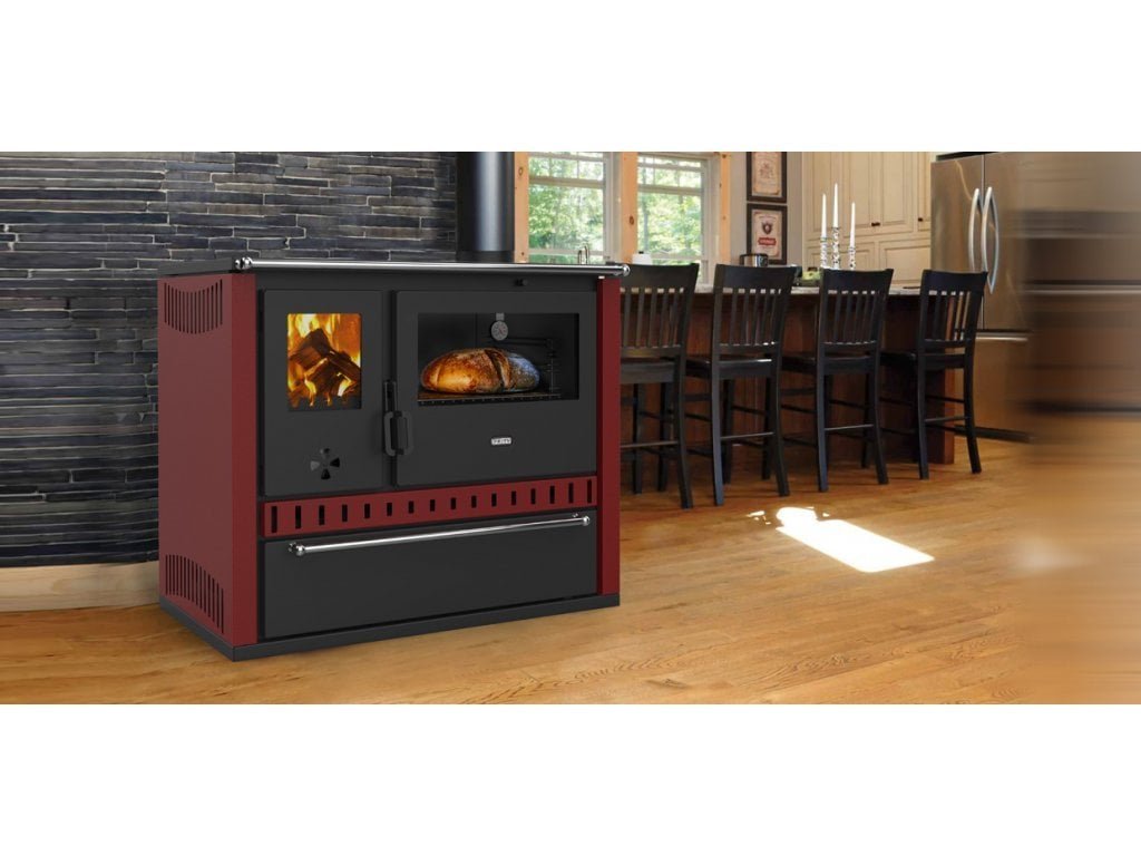 Sporák na tuhé palivo s výmenníkom tepla PRITY GT W10 FI S DR, bordová farba