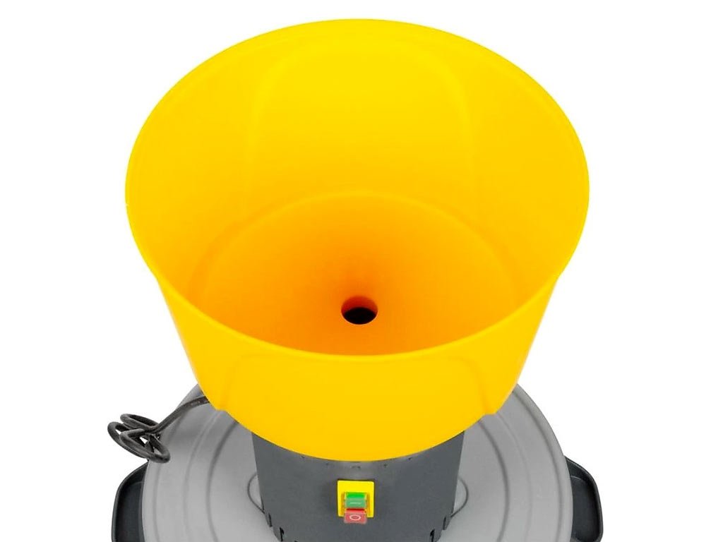 - Objem násypky a zásobníka: 13,7 l násypka + 60 l barel na výstup šrotu