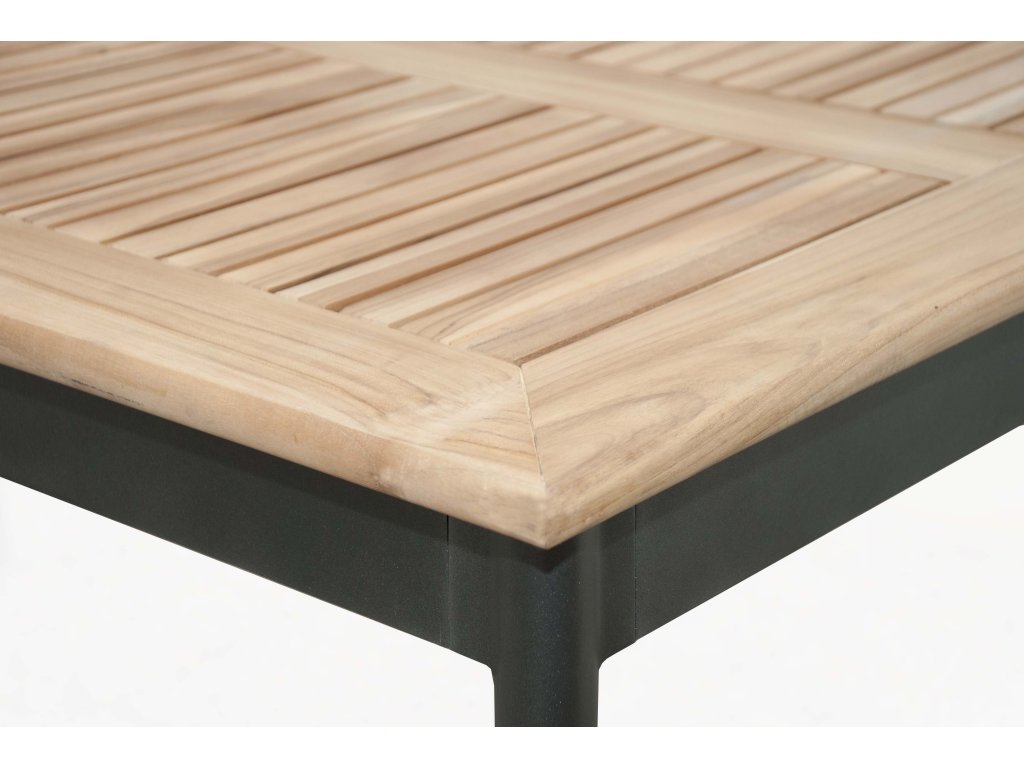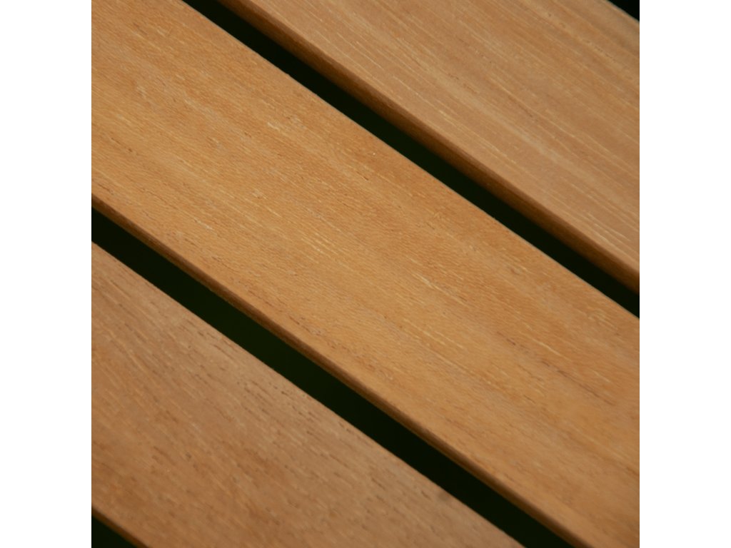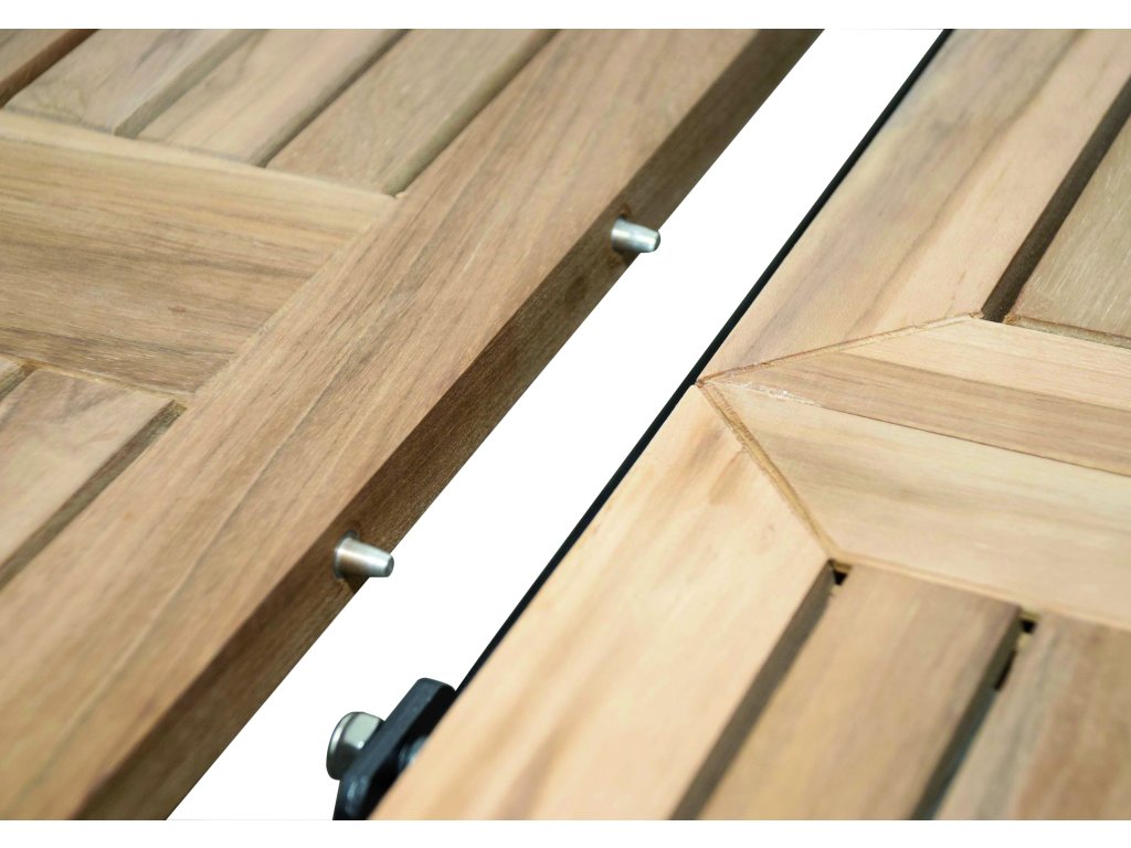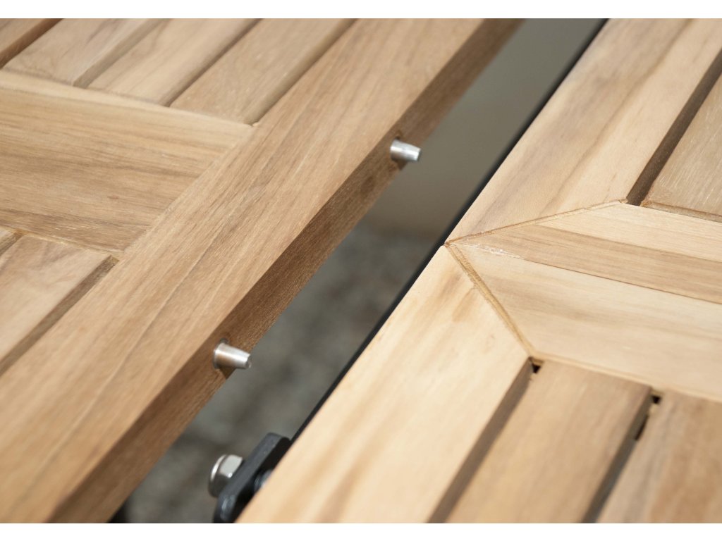 Vysušené teakové drevo dokáže odolať extrémnym podmienkam, akými sú vlhkosť, veľké výkyvy teplôt, priame slnečné žiarenie alebo naopak mráz. Je vysoko trvanlivé a odolné voči vplyvom počasia či hmyzu a plesniam. Stôl je FSC® certifikovaný produkt. Máte teda istotu, že drevo pochádza zo šetrne obhospodarovaných lesov.