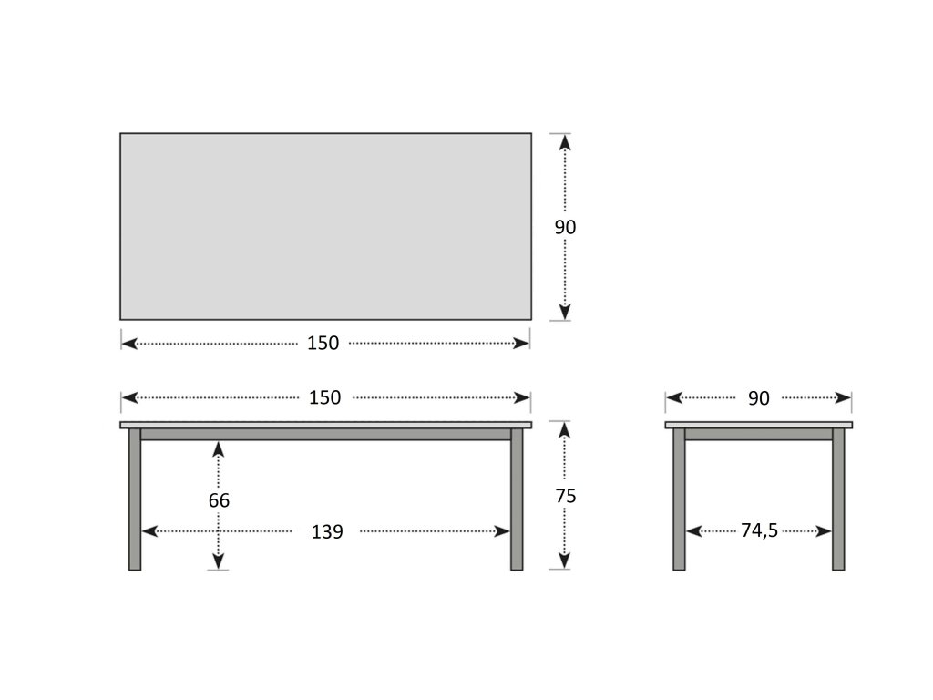 - rozmery: 150 x 90 x 75 cm (šírka x hĺbka x výška)