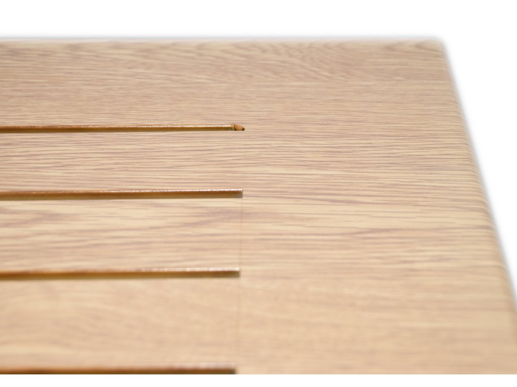 - rebrovaná hliníková doska stola s nástrekom v imitácii dreva
