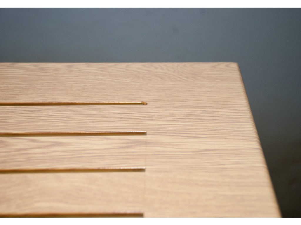 - rebrovaná hliníková doska stola s nástrekom v imitácii dreva